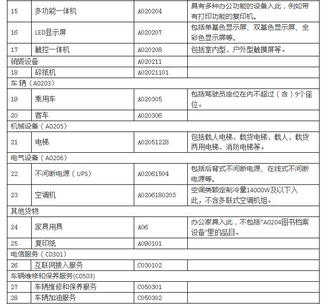 (一)各市(州)、县(市)统一执行本通知规定的政府集中采购目录范围及标准。