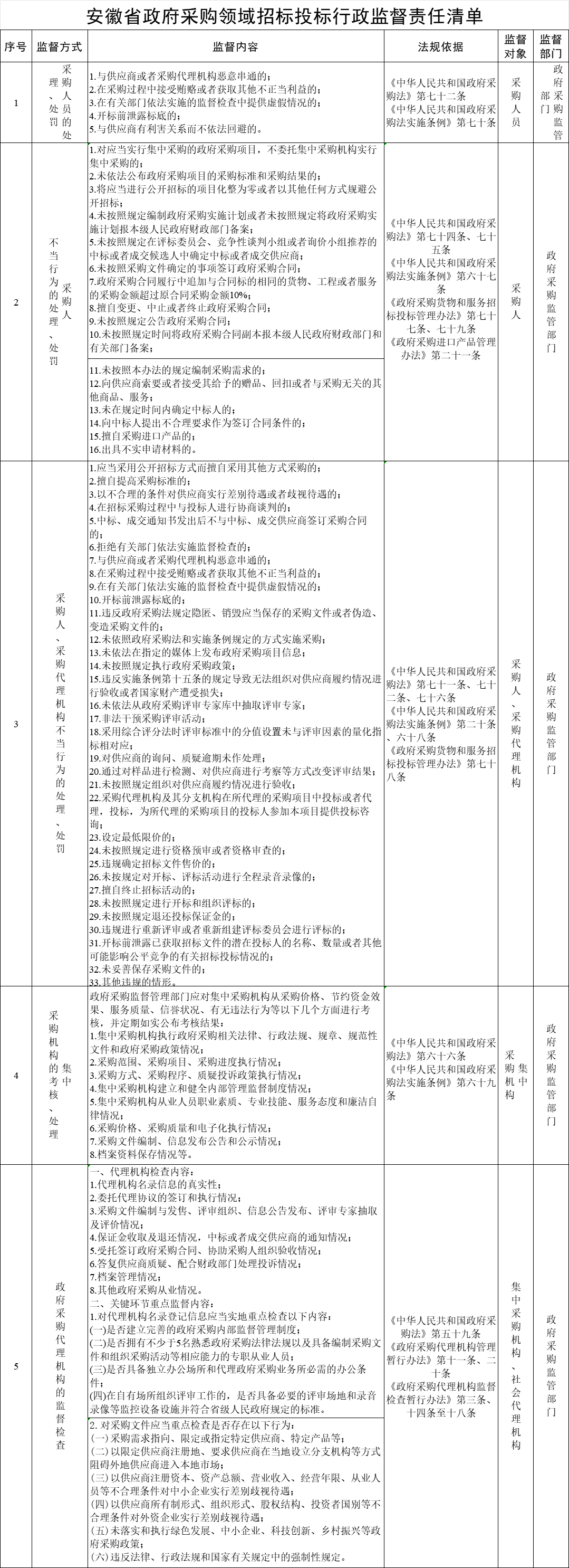 安徽发布政府采购领域招标投标行政监督责任清单